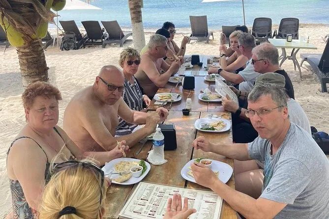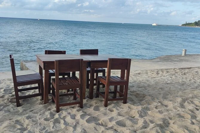 Dopodiché siamo andati a Chen Rio, una spiaggia selvaggia di Cozumel — sembrava uscita da un sogno ma era tutta realtà, con il vento che sollevava la salsedine e la gente del posto che faceva picnic sotto le palme. Ho tolto i sandali e ho camminato sulle rocce riscaldate dal sole, ma non ancora troppo calde. Abbiamo bevuto qualcosa di fresco dal frigorifero del van (quel dettaglio ha fatto davvero la differenza), guardato le onde infrangersi sulla riva e ci siamo semplicemente seduti a godere il momento. Nessun orario da rispettare. A un certo punto Miguel ha offerto una degustazione di tequila — l’ho provata, probabilmente ho fatto una smorfia, ma lui ha detto che è normale per chi la assaggia la prima volta.