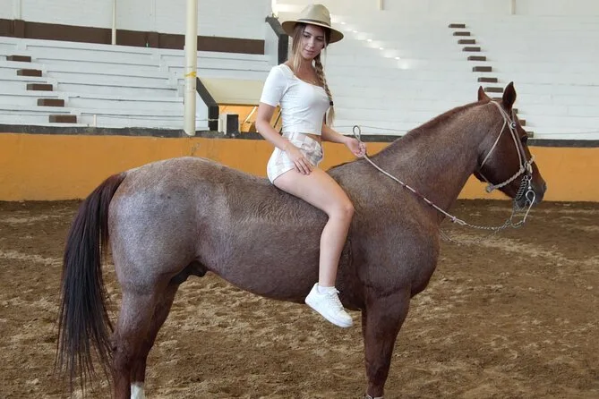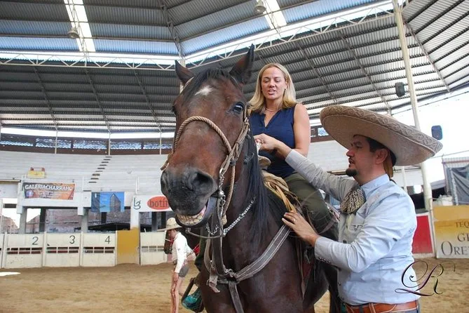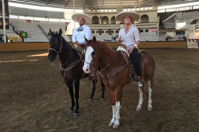 Entra nel mondo della charrería a Jalisco: tocca vecchie selle in un museo vivente, incontra veri charros, impara a lanciare il lazo (o almeno ci provi), cavalca un Quarter Horse con il tuo cappello charro e concludi con tequila e musica sotto il cielo ampio del Messico. Un’esperienza autentica, coinvolgente e sorprendentemente emozionante.