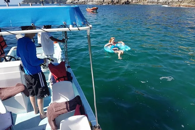 Il tuo giorno include il trasporto andata e ritorno alla Marina di Santa Cruz, birra e acqua (o soda) servite a bordo durante la navigazione tra le baie di Huatulco, più tanto tempo per nuotare o rilassarti in due spiagge prima del rientro nel pomeriggio.