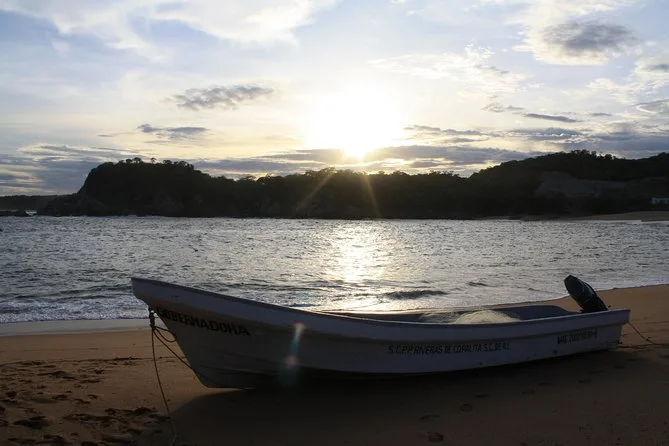 Parti dalla Marina di Santa Cruz per navigare tra le famose baie di Huatulco con una guida locale, fermandoti a nuotare o prendere il sole in due spiagge e facendo una pausa pranzo in un villaggio di pescatori (pranzo non incluso). Con bevande a bordo e transfer andata e ritorno, potrai goderti quei piccoli momenti — come il sole che si riflette sull’acqua salata o le risate che rimbalzano sulle scogliere — che restano nel cuore molto dopo il viaggio.