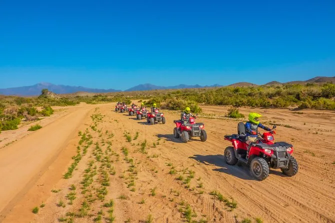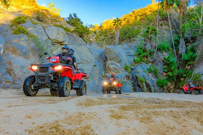 Il tuo giorno include il trasferimento andata e ritorno in van climatizzato, tutta l’attrezzatura di sicurezza (casco, guanti, occhiali), l’uso di un ATV 4x4 automatico guidato da locali lungo i sentieri del deserto di Baja, pranzo buffet messicano illimitato con opzioni vegetariane in un ristorante fronte oceano, più degustazioni di tequila e birra prima del ritorno in hotel.