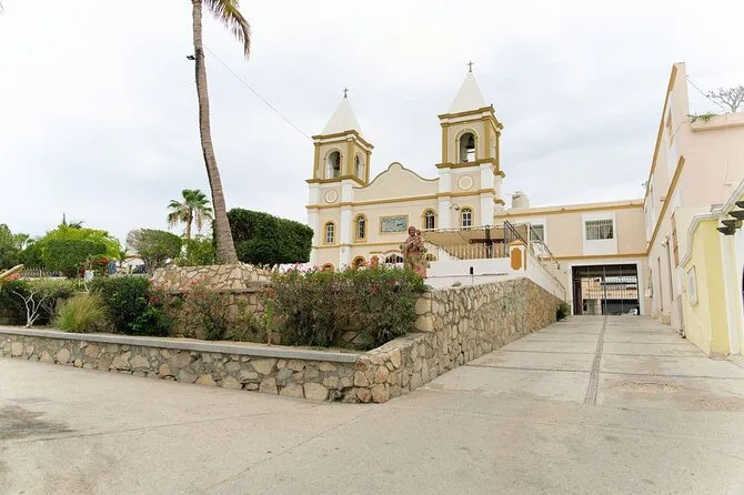 Il tuo giorno include pick-up e drop-off dagli hotel di Los Cabos, acqua in bottiglia durante tutto il percorso, commento dal vivo della guida locale Mario (o qualcuno altrettanto energico), ingresso ai luoghi chiave come Plaza Mijares e il Municipio di San Jose del Cabo, soste in botteghe artigiane — una fabbrica di vetro soffiato e una gioielleria di perle — e si conclude con un giro in barca con fondo trasparente fino a El Arco, prima di tornare al punto di partenza.