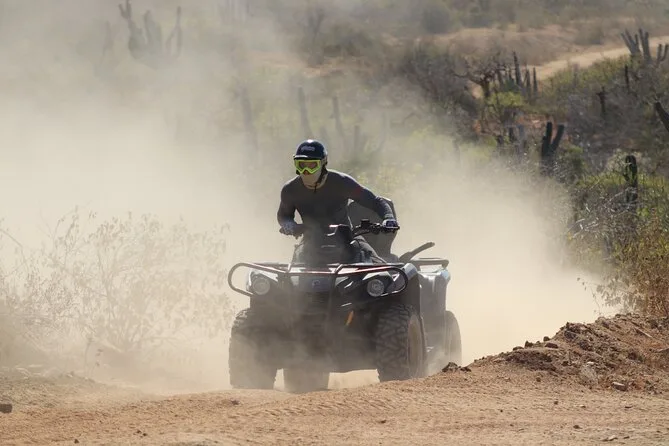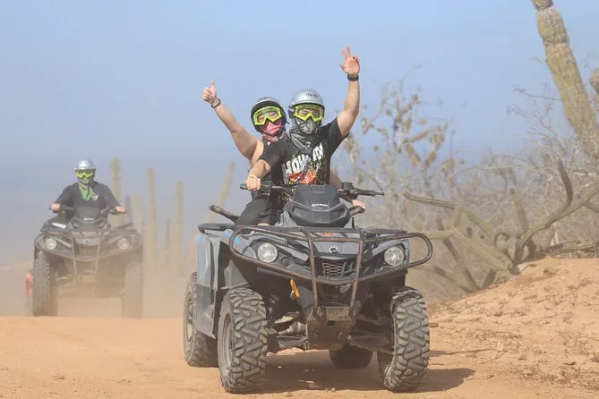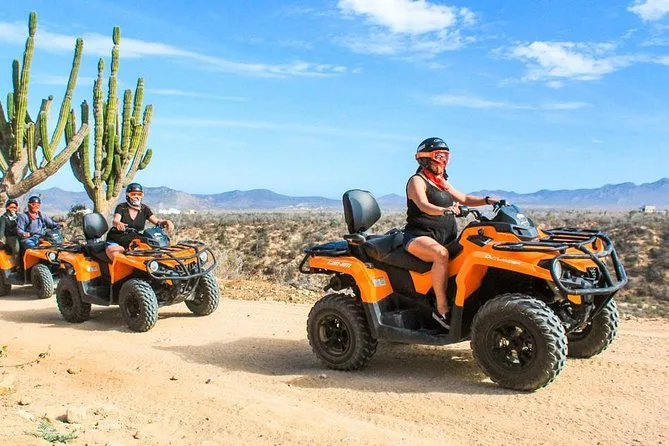 Il tuo giorno include il trasporto andata e ritorno dall’hotel, tutto l’equipaggiamento di sicurezza per guidare gli ATV sulle dune di Migriño Beach, acqua per rimanere idratato sotto il sole della Baja, la guida di un esperto locale, accesso al Kids Club se necessario, e una vera degustazione di tequila prima del rientro.