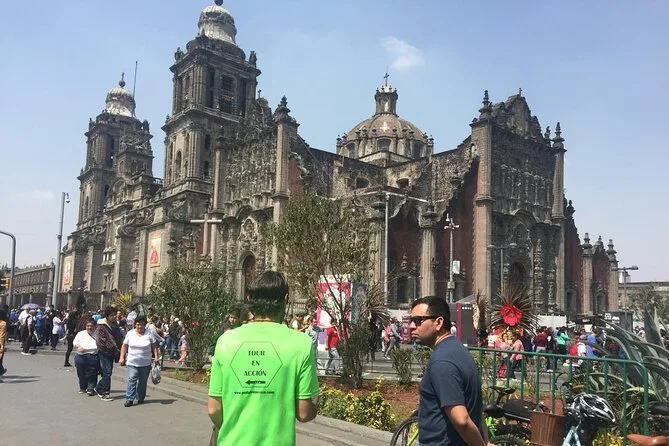 Abbiamo concluso al Zócalo, con le bandiere che sventolavano sopra di noi e la Cattedrale Metropolitana che dominava tutto. Dentro c’era un matrimonio — le campane risuonavano nella piazza — così ci siamo fermati un attimo ad ascoltare. Non era esattamente silenzioso, ma era comunque un momento di pausa. Se cerchi un’escursione nel centro storico di Città del Messico che ti faccia sentire davvero dentro la città (con pickup e pranzo inclusi), questo tour in bici è quello giusto.