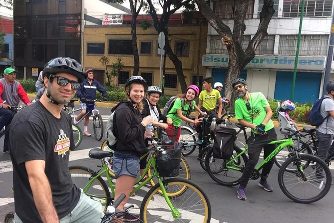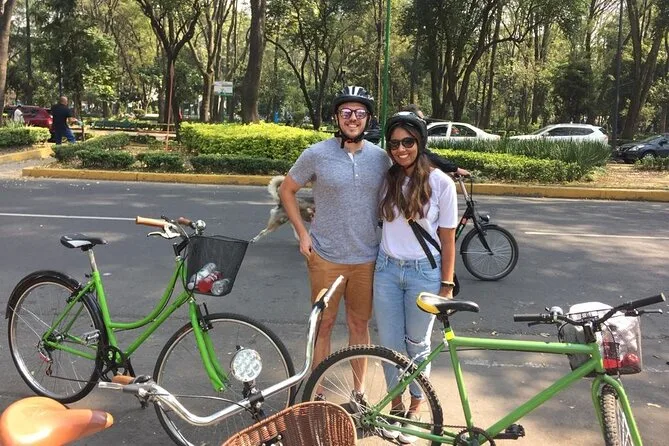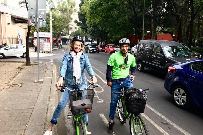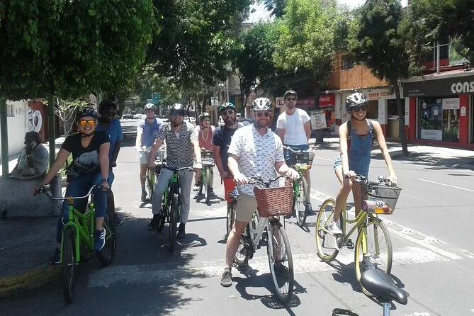 Il tour include bici e casco, acqua in bottiglia per rinfrescarti, due autentici tacos messicani e una bevanda aromatizzata durante la sosta, il tutto guidato da una guida locale che conosce ogni scorciatoia nel centro storico di Città del Messico.