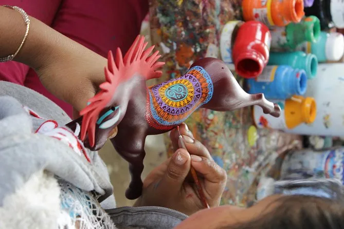 Visiterai San Antonio Arrazola per gli alebrijes (sculture in legno) e San Bartolo Coyotepec per la ceramica nera.