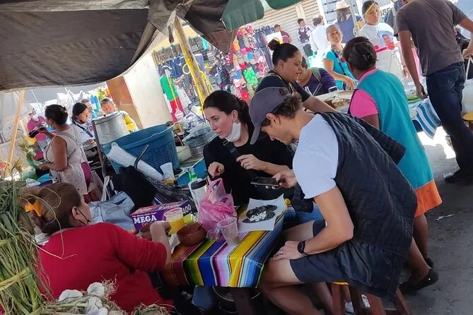 La giornata include tutti gli assaggi — circa venti in totale — una bevanda tradizionale come tepache o pulque, e la guida di una ricercatrice gastronomica certificata che ti presenta personalmente i venditori locali in diversi mercati di Oaxaca.