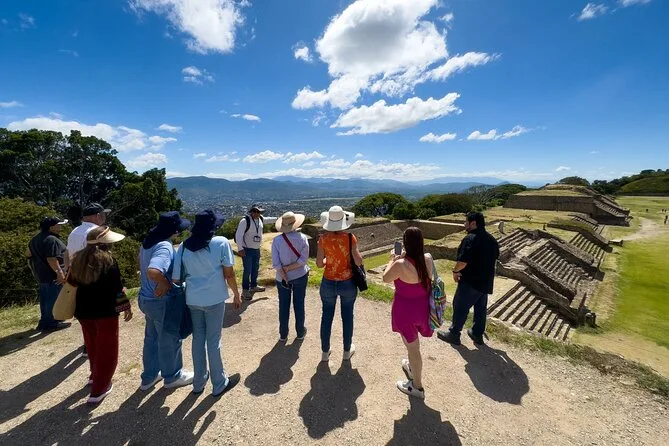 Il tuo mattino include pickup in hotel a Oaxaca, trasporto andata e ritorno in comodo pullman, ingresso a Monte Albán con guida locale bilingue che ti accompagna tra rovine e incisioni, per poi tornare verso mezzogiorno.