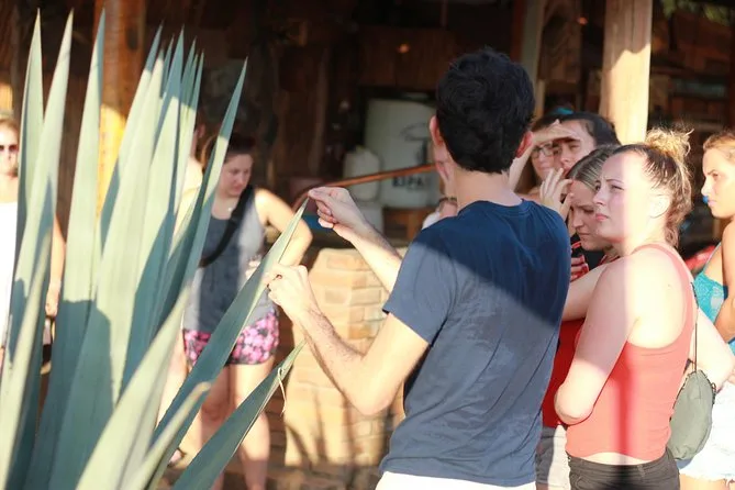 Il tuo giorno include il pick-up privato a Puerto Escondido e il trasporto verso una distilleria familiare; un’introduzione alla storia e produzione del mezcal; una visita guidata ai tradizionali forni di cottura; degustazioni di cinque o sei mezcal fatti in casa; più snack oaxaqueños come guacamole e chapulines, prima di tornare insieme in comodità.