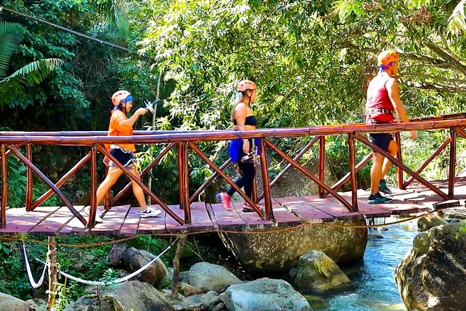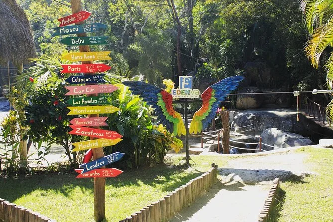 Volerai sopra le chiome degli alberi con il circuito zipline di Edenva, camminerai su sentieri ombrosi lungo il fiume nella Sierra Madre e ti rinfrescherai con un tuffo prima di assaggiare piatti locali al ristorante del parco. Trasporto privato e attività incluse rendono questa gita da Puerto Vallarta facile e piena di sorprese.