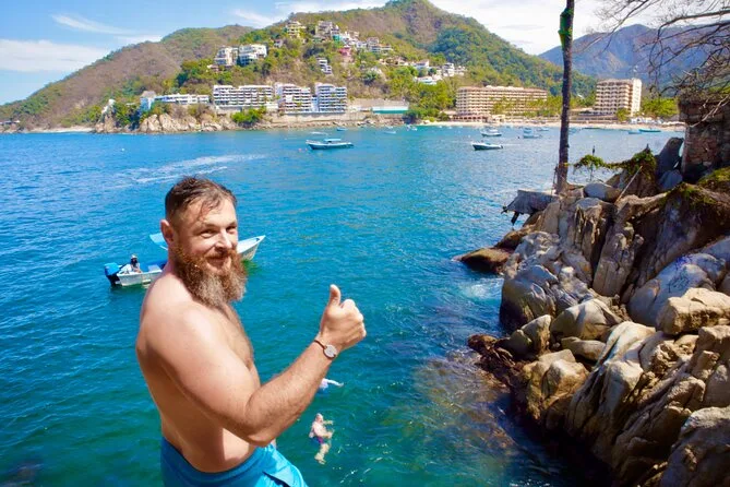 “Sei sicuro di voler saltare da lì?” mi ha chiesto Marco, la nostra guida, con un sorriso che tradiva già la risposta. Eravamo appena arrivati in una piccola baia selvaggia vicino a Mismaloya, con le rovine del vecchio set cinematografico che spuntavano dietro di noi. La barca ondeggiava dolcemente e il sole già scaldava le spalle — sentivo l’odore della crema solare e del mare, e una risata in spagnolo alle mie spalle. Ho esitato sul bordo, poi… mi sono lanciato. L’acqua era più fredda di quanto immaginassi. Il cuore batteva forte, ma sono riemerso con un sorriso. Non tutti hanno saltato — alcuni sono rimasti a guardare dalla barca o a galleggiare nell’acqua azzurra sotto di noi. Nessuna pressione, ognuno fa come vuole.