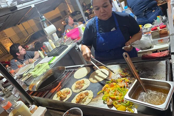 Gira a piedi per il vivace centro storico di Puerto Vallarta di sera con una guida locale, assaggiando tacos appena fatti e sorseggiando agua fresca tra una tappa e l’altra. Aspettati almeno cinque soste gastronomiche—dall’arrachera alla cabeza—e concludi con un gelato artigianale o un ghiacciolo, tornando a casa sazio e felice.