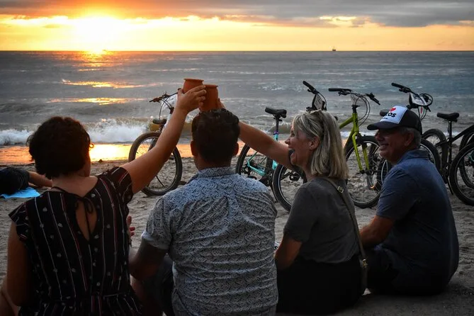 Pedalerai per le vivaci strade di Puerto Vallarta al tramonto con una guida locale, fermandoti per sei tipi di tacos (marlin, asada, pastor), cocktail a base di mezcal in bar nascosti e churros freschi. Lungo il percorso vedrai luoghi come El Malecon e la Chiesa di Nostra Signora di Guadalupe, assaporando storie e sapori che ti resteranno nel cuore molto dopo il giro.