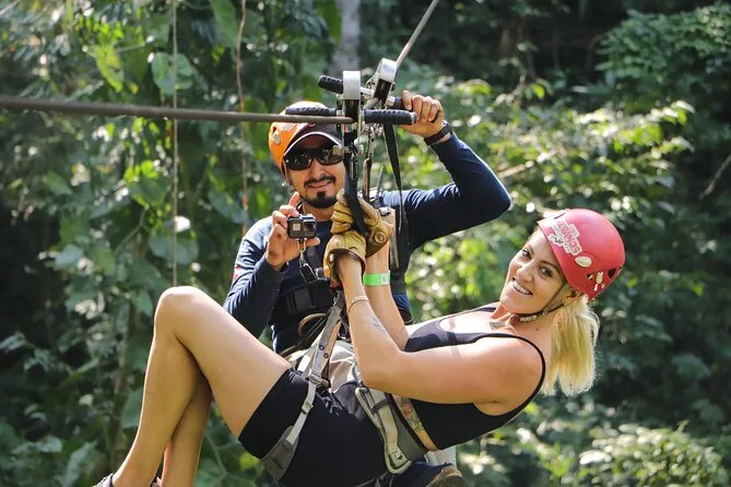 Attraversa la Baia di Banderas in motoscafo fino alla giungla di Puerto Vallarta per 19 zipline sopra fiumi e alberi. Degusta tequila artigianale con i locali, rilassati nelle piscine naturali o prova il kayak dopo il pranzo in un caffè sul fiume. Concludi la giornata incontrando scimmie e tucani in un santuario: un’avventura piena di emozioni.