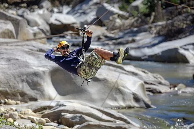 Il pezzo forte sono le zipline — 19 in tutto, che si snodano sopra il fiume Horcones e tra il verde fitto della foresta. Le mani mi sudavano prima del primo salto (non sono proprio un tipo coraggioso), ma le guide erano super preparate. Controllavano ogni imbrago due volte, ci prendevano un po’ in giro per sciogliere la tensione, e poi all’improvviso sei lì — il vento che ti fischia nelle orecchie, le chiome degli alberi sotto di te. A un certo punto ho provato a guardare giù verso il fiume, ma il casco continuava a scivolarmi sugli occhi. Insomma, niente grazia, ma un’esperienza che non si dimentica.