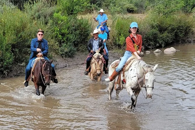 La tua giornata include circa 2,5 ore di cavalcata tra fiumi e canyon vicino a San Miguel de Allende con guide esperte e cowboy locali al tuo fianco. Dopo ti godrai un pranzo messicano all’aperto direttamente al ranch — e, se serve, ti verranno forniti poncho antipioggia lungo il percorso.