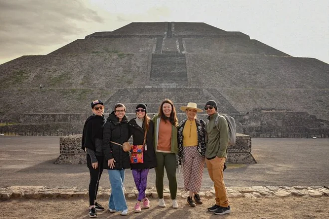 Il tour include trasporto da Città del Messico, biglietti per la zona archeologica di Teotihuacan, guida esperta locale durante la passeggiata tra piramidi e templi, più degustazioni di tequila, mezcal e pulque con famiglie artigiane prima del rientro comodo in città.