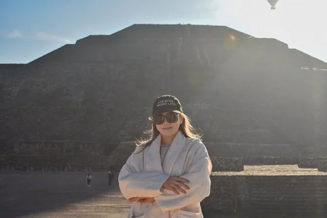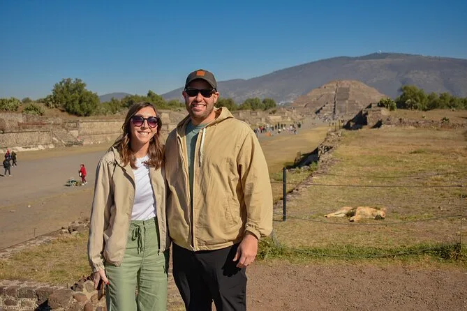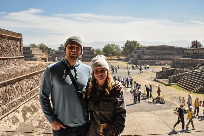Non pensavo mi sarebbe interessata la lavorazione dell’ossidiana, ma vedere un artigiano intagliare quella pietra nera lucida era quasi ipnotico. Ci siamo messi tutti un cappello di paglia per una foto — non è il mio look migliore ma chi se ne importa? Quando siamo arrivati alla Piramide del Sole, c’era un’energia strana nell’aria — forse era solo la fine della carica di caffeina o chissà. Il sole batteva forte sulle pietre; si sentiva il calore che saliva anche se non era ancora mezzogiorno.