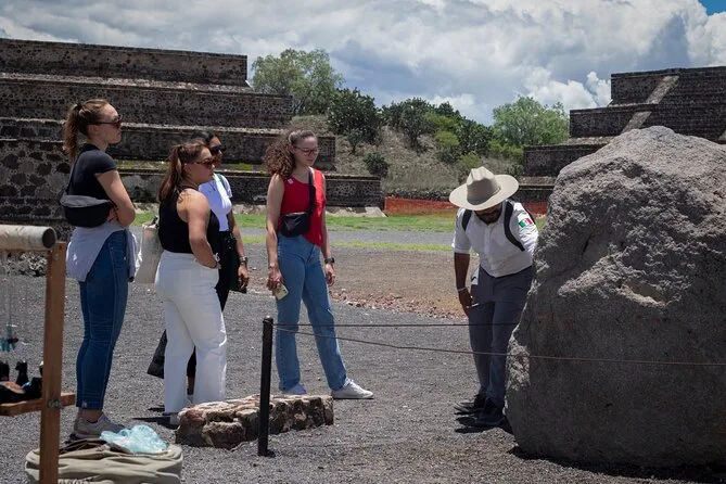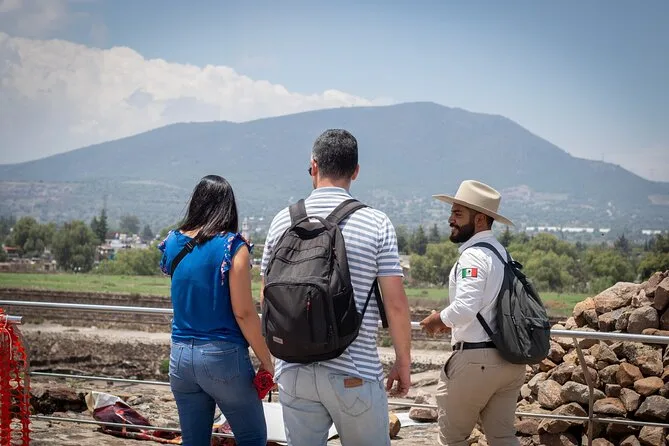 Il tuo giorno include il pick-up e drop-off in veicolo climatizzato dall’hotel o punto d’incontro, i biglietti per la zona archeologica di Teotihuacan, acqua in bottiglia per tutti, poncho o ombrelli in caso di pioggia e una colazione tradizionale messicana servita dentro una grotta naturale prima della passeggiata guidata tra piramidi e affreschi.