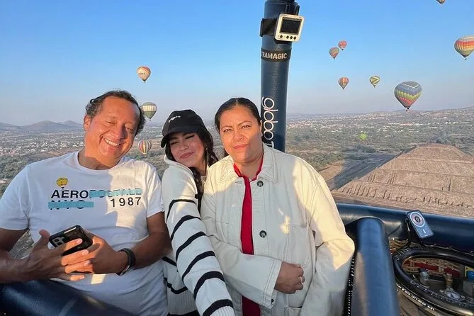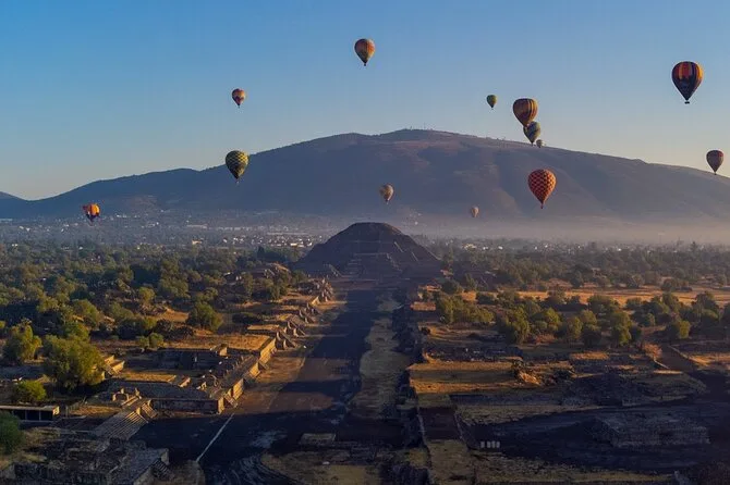 Il tuo giorno comprende il pick-up in hotel a Città del Messico, caffè e pane prima del decollo, un volo in mongolfiera sopra Teotihuacan con brindisi tradizionale all’atterraggio, colazione dentro La Cueva (se selezionata), visite a una cooperativa locale con laboratori e degustazioni, più tempo libero nell’area archeologica prima del rientro in hotel.