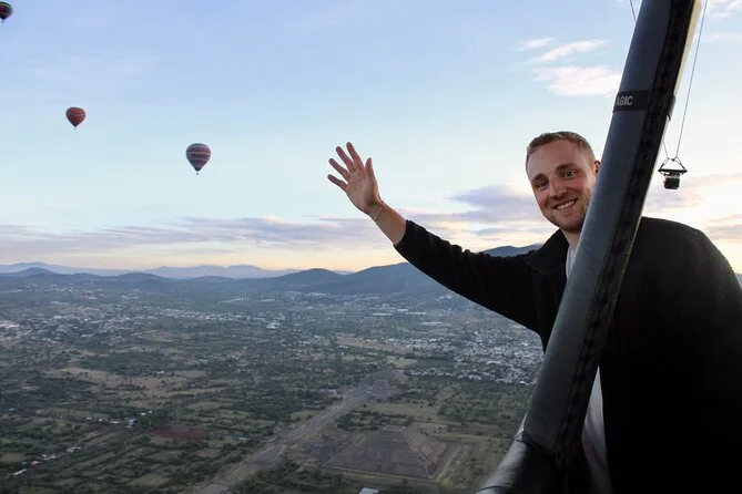 Il volo — wow. Ti ritrovi a fluttuare sopra le piramidi del Sole e della Luna, osservando il Viale dei Morti che si stende sotto di te in una luce dorata soffusa. Là in alto c’è un silenzio che sembra troppo grande per essere descritto a parole. Ho cercato di scorgere le persone a terra, ma sembravano solo puntini minuscoli. Quando siamo atterrati (molto più dolcemente di quanto immaginassi), qualcuno ha stappato lo spumante e Ana ha distribuito dei piccoli certificati — un po’ sdolcinati, ma anche simpatici. Le mani mi tremavano ancora per l’emozione.