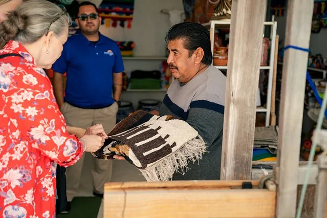 Il tuo giorno include il pick-up dagli hotel di Cabo San Lucas, visite a gallerie d’arte e siti storici come la vecchia missione gesuita e il teatro, una sosta in una fabbrica di coperte messicane con dimostrazioni di tessitura, degustazione tradizionale di tequila, una dimostrazione ravvicinata di perle e il pranzo servito all’Hotel California prima del rientro nel pomeriggio.