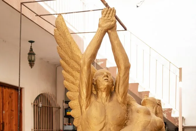 La vecchia missione gesuita si trova proprio nel centro del paese. Jorge ha indicato dei segni di proiettile sul muro della chiesa (non li avevo notati fino a quando non me li ha fatti vedere), poi siamo andati al Teatro Marquez de Leon. Non è niente di grandioso, ma ha un’eleganza sbiadita—la vernice scrostata in alcuni punti, ma la gente si raduna ancora fuori come se fosse importante. La passeggiata tra le gallerie d’arte è stata più lenta di quanto pensassi; mi fermavo a ogni vetrina perché i quadri sembravano diversi da quelli a casa—più luce del deserto, meno perfezione. C’era una scultura che sembrava legno portato dal vento—ancora oggi mi torna in mente.