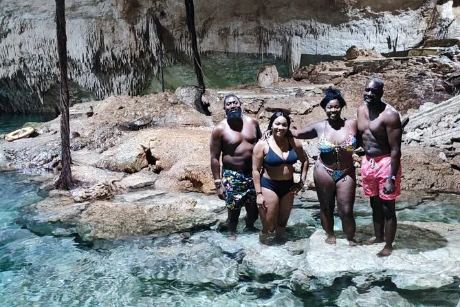 Il viaggio verso il cenote Taak Bi Ha è stato breve ma sembrava un altro mondo — la giungla fitta ci stringeva da entrambi i lati. Quando siamo arrivati, c’eravamo solo noi e un’altra famiglia. L’aria dentro era fresca e aveva un leggero profumo minerale, quasi dolce e terroso. All’inizio ho esitato (l’acqua fredda mi blocca sempre), ma una volta dentro è come fluttuare in una grotta segreta, con la luce che si riflette sulle rocce sott’acqua. Il mio amico cercava di pronunciare “cenote” correttamente; Luis rideva dicendo che ci stavamo avvicinando ogni volta.