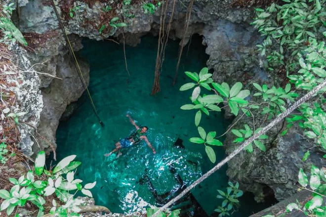 La tappa successiva è stata Taak Bi Ha — onestamente non mi aspettavo di sentirmi così piccolo dentro una grotta. L’aria cambiava completamente; aveva un profumo di terra fresca, quasi dolce. Sopra di noi stalattiti ovunque, alcune gocciolavano piano. Luis ha acceso la sua lampada frontale e ci ha mostrato strane formazioni rocciose che sembravano uscite da un film di fantascienza. È difficile spiegare quanto buio faccia quando sei nel profondo, ma anche quanto ti senti al sicuro con chi conosce ogni angolo. C’erano dei pipistrelli (tranquilli, non danno fastidio) e un punto dove la luce rifletteva sull’acqua creando un bagliore blu magico per un attimo.