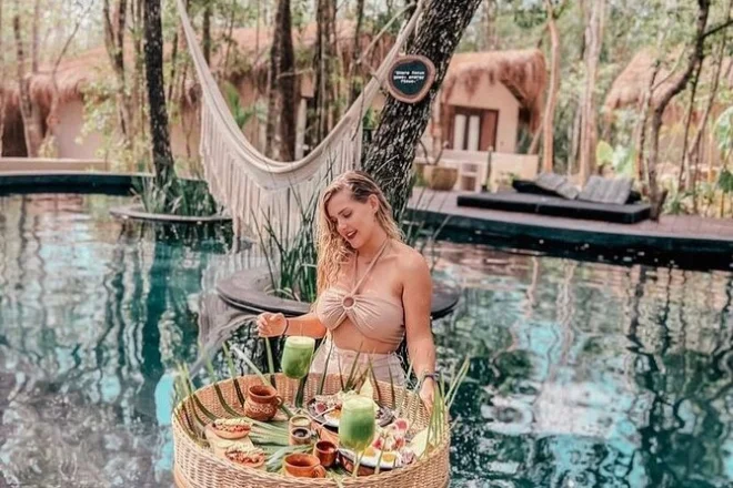 La colazione galleggiante sembra una trovata da Instagram, ma in realtà è semplicemente divertente. Uova come le vuoi, chilaquiles dal sapore affumicato e fresco allo stesso tempo (ho chiesto salsa extra, nessun rimpianto), e un caffè che mi ha davvero svegliato. Il vassoio ondeggiava un po’ quando prendevo la frutta, ma a nessuno importava — abbiamo riso quando qualcuno ha quasi perso il bagel in acqua. In sottofondo c’era il canto degli uccelli e l’odore di foglie bagnate che arrivava dal bordo piscina. Non so perché, ma quella sensazione mi è rimasta impressa.