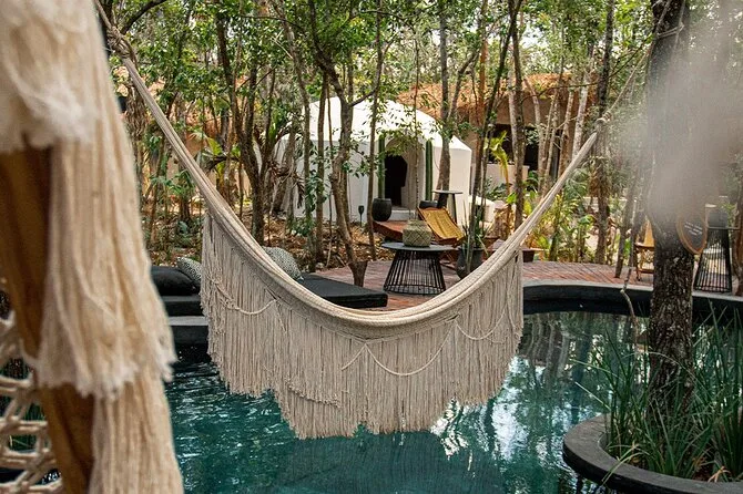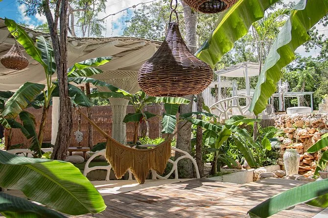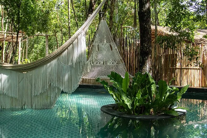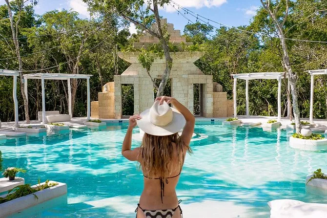 Galleggia nella piscina illuminata dal sole vicino a Tulum, gusta chilaquiles preparati dallo chef e vivi una meditazione guidata nel tradizionale temazcal maya tra profumi di erbe e calore vulcanico. Con pickup al cenote Dos Ojos e tempo per rilassarti o esplorare le acque sacre vicine, questa esperienza ti farà sentire più leggero.