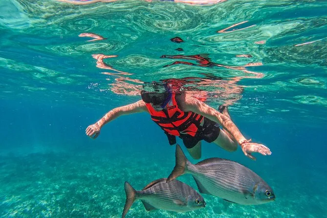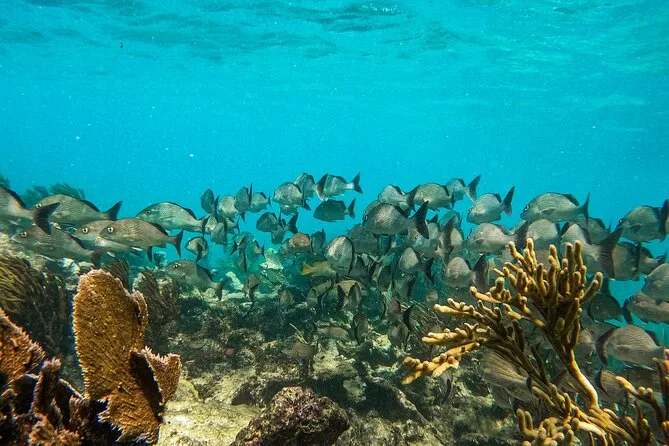 La tua giornata include l’uso di tutta l’attrezzatura necessaria per lo snorkeling mentre esplori due punti diversi della barriera appena fuori dalla spiaggia di Tulum con una guida locale, per poi tornare a riva con la sabbia addosso ma felice — tieni presente che i biglietti per Jaguars Park e le tasse della Zona Federale Marittima non sono inclusi.