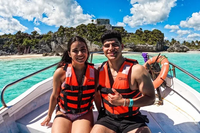 Snorkeling in due punti vivaci della barriera vicino a Tulum con guida locale — nuota accanto a tartarughe e razze sotto l’ombra delle antiche rovine. Aspettati capelli salati, qualche risata per i tuoi goffi movimenti sott’acqua e momenti autentici che restano impressi anche dopo aver tolto la sabbia.