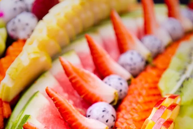 Troverai frutta di stagione, guacamole alla maya, ceviche o sushi, panini come tacos di gamberi o empanadas, più dessert vari.