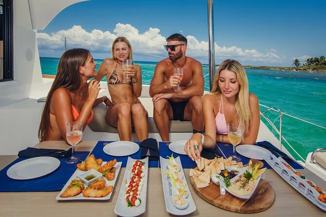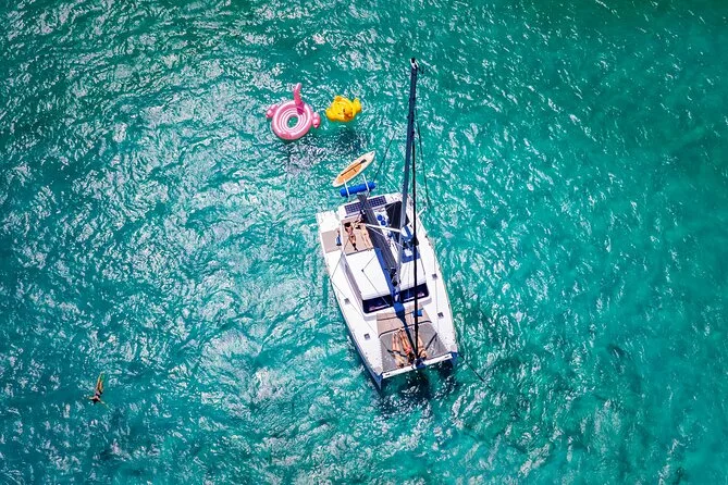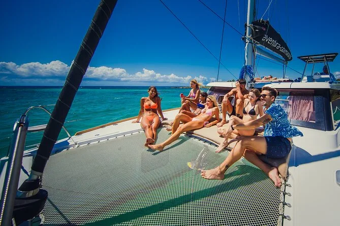 La tua giornata comprende la navigazione su un catamarano di 34' da Puerto Aventuras con tutta l’attrezzatura per snorkeling inclusa, bevande illimitate all’open bar per tutta la durata, snack e pranzo preparati dallo chef serviti a bordo da un equipaggio locale, più accesso a paddle board e gonfiabili per rilassarti o giocare nelle calde acque caraibiche prima del rientro nel pomeriggio.