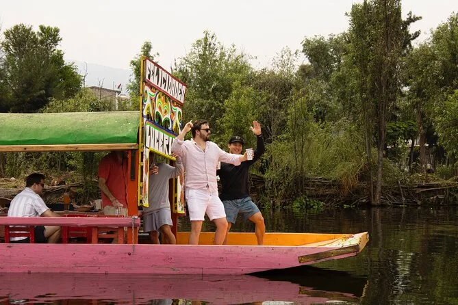 Il tuo giorno include l’ingresso a una trajinera decorata (barca tradizionale in legno) a Xochimilco, birra, tequila, micheladas, margaritas, bibite e acqua illimitate durante tutta la navigazione, più tacos croccanti serviti freschi mentre scivoli tra i famosi giardini galleggianti di Città del Messico — tutto guidato da locali che mantengono alta l’energia dall’inizio alla fine.