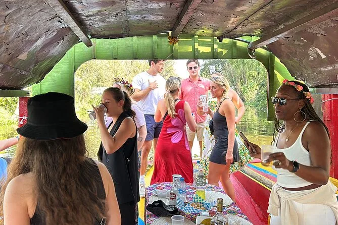 Scivola tra i canali di Xochimilco su una barca festa decorata con birra, tequila, micheladas, margaritas e tacos croccanti illimitati. La musica parte da tre palchi mentre ti diverti in costume e assorbi l’energia unica dei giardini galleggianti di Città del Messico, con tante risate grazie alla guida locale.