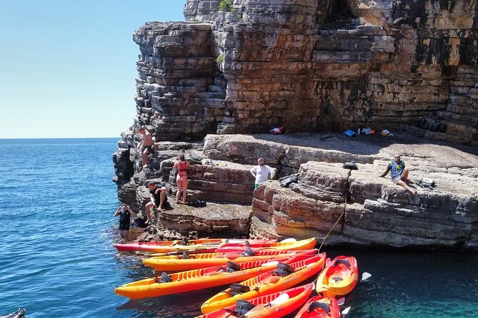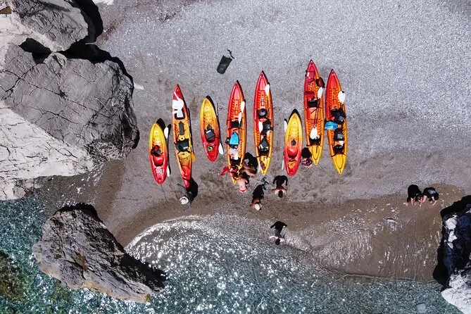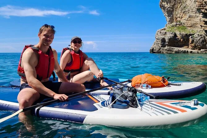 Il percorso in pagaia segue la costa con varie soste; la durata dipende dal ritmo del gruppo e include tempo per nuotare ed esplorare.