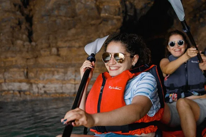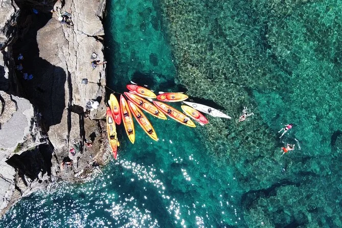 Il tuo giorno include l’uso di kayak singolo o doppio o stand-up paddleboard (a scelta), attrezzatura completa per snorkeling alla Laguna Blu, sacche impermeabili per i tuoi effetti personali, giubbotti di salvataggio per tutti, più una guida locale tranquilla che ti insegnerà le basi della pagaia se serve—e scatterà foto e video lungo il percorso così non dovrai preoccuparti di perdere nulla.