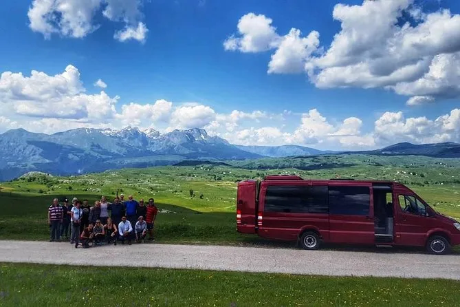 Il tuo giorno include il prelievo con veicolo climatizzato e assicurazione inclusa, tutti i biglietti e le tasse, più una colazione e un pranzo abbondanti fatti in casa serviti nei villaggi locali, con rientro attraverso soste panoramiche lungo il Durmitor Ring.