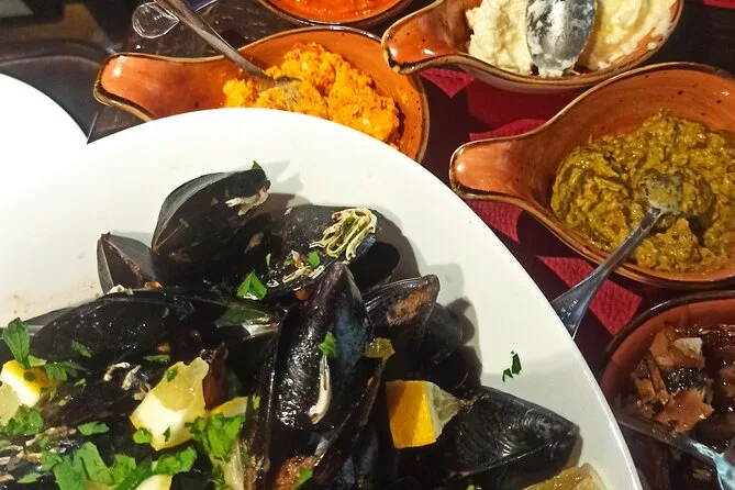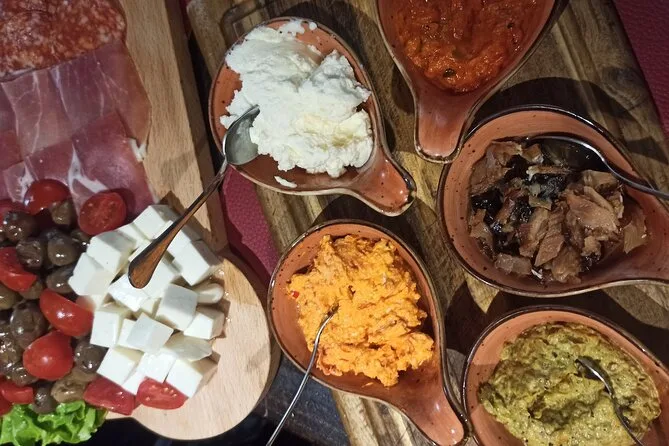 Il tuo giorno inizia incontrando la guida professionale nel centro storico di Kotor per una passeggiata tra strade e piazze storiche, seguita da assaggi di prosciutto, formaggi, olive e rakija al mercato (o in un luogo alternativo nel pomeriggio). Poi pranzerai con salse fatte in casa, pane e olio d’oliva, cozze in salsa buzara abbinate a vino montenegrino o birra—e c’è sempre spazio per un caffè o una bevanda analcolica.