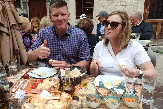 Con una guida locale, camminerai per il centro storico di Kotor, assaggiando formaggi freschi e prosciutto al mercato animato prima di sederti per un pranzo a base di cozze e vino in una piazzetta accogliente. Ti aspettano risate con i venditori, racconti della guida e sapori che porterai con te anche dopo il Montenegro.