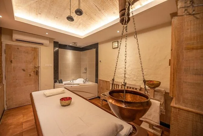 Non avevo mai fatto un massaggio ayurvedico completo. L’olio era caldo e profumava leggermente di chiodi di garofano; dopo un po’ smetti di pensare al telefono, alle mail o a qualsiasi cosa fuori da quella stanza. Il bagno di vapore alle erbe mi ha lasciato la pelle che pizzicava per ore — una sensazione strana ma piacevole. Le serate erano più tranquille del solito; a volte restavamo sul tetto dopo cena ad ascoltare i suoni della città che salivano nel buio. Non è silenzioso qui, ma in qualche modo è comunque pacifico.