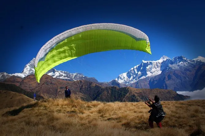 Il tuo pacchetto include il trasferimento da e per Pokhara, tutta l’attrezzatura per il parapendio, un pilota certificato che ti guiderà, più foto e video del volo—tasse incluse.