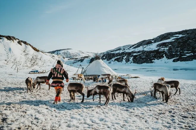 Attraversa la costa selvaggia di Kvaløya con una guida locale, dai da mangiare alle renne con un allevatore Sami e riscaldati nella tenda lavvo ascoltando i canti tradizionali Joik. Poi goditi un pranzo a Sommarøy Arctic Hotel e una passeggiata sulle spiagge battute dal vento — momenti che ti resteranno nel cuore.