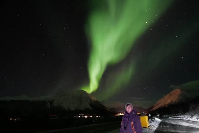 Parteciperai a un piccolo gruppo che parte da Tromsø alla ricerca dell’aurora boreale con una guida locale esperta e piena di storie. Pantaloni caldi, giacche, lampade frontali, bevande calde e snack sono inclusi — con una pausa rilassante in una grillcabin se siamo nei paraggi. Risate, panini alla cannella e foto che ti arriveranno dopo. Non è solo vedere l’aurora, ma vivere insieme quell’attesa sotto il cielo.