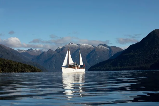 Salpa sul Lago Te Anau a bordo di uno yacht storico, esplora i sentieri antichi del Fiordland con una guida locale e gusta canapé freschi sotto il cielo aperto. Momenti di meraviglia tra alberi maestosi ti faranno sentire in un altro mondo per un pomeriggio.