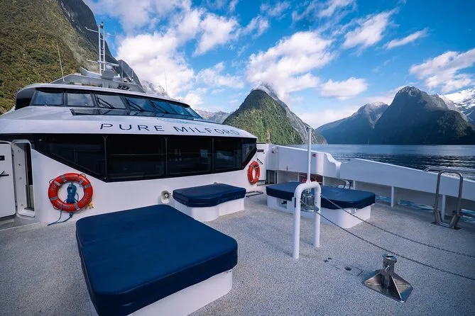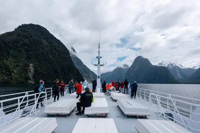 La tua giornata include una crociera di due ore a Milford Sound a bordo di un moderno catamarano a tre ponti con posti a sedere interni e ponti aperti per ammirare cascate e fauna. Durante il viaggio sono offerti caffè e tè; snack, vino locale e birra sono disponibili all’acquisto al bar-caffetteria prima del ritorno al porto.