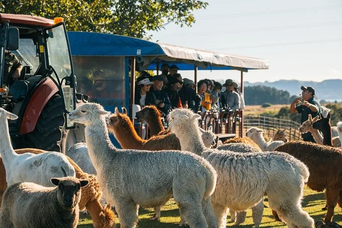 Il tuo giorno include l’ingresso allo Sheep Show e al Farm Tour all’Agrodome vicino a Rotorua. Potrai dare da mangiare a mano ad alpaca e pecore, visitare la nursery con gli animali baby, fare un giro di un’ora su rimorchi coperti tra i paddock (anche con pioggia), assistere alle dimostrazioni con cani e pecore e assaggiare miele locale e succo di kiwifruit.