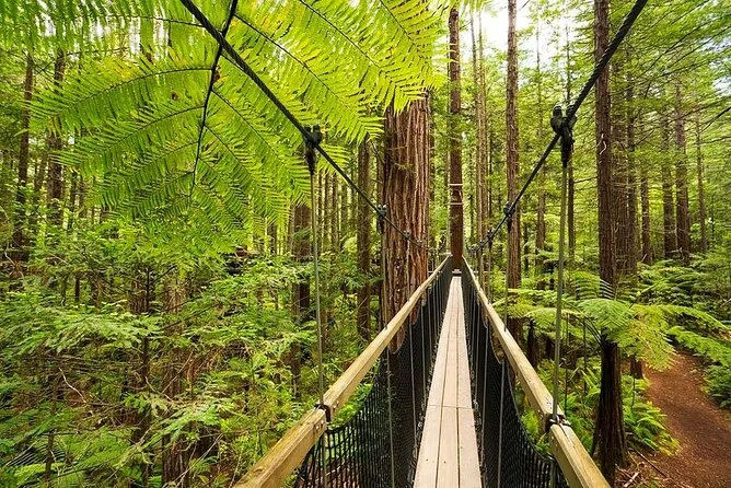 Immergi i piedi nelle sorgenti termali naturali, cammina tra giganti redwoods su ponti sospesi e ammira le lucciole che illuminano una grotta buia — tutto con una guida locale che conosce ogni scorciatoia e storia. Aspettati snack caldi e acqua ancora più calda in questa gita in piccolo gruppo da Tauranga a Rotorua.